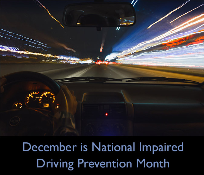 December is recognized as National Impaired Driving Prevention Month. During the holiday month, it’s an important time to remind people of the dangers and consequences of driving under the influence of alcohol, marijuana, and other mind-altering substances.